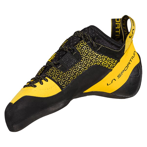 クライミングシューズの形状を長期間維持する構造。高いテンションをかけたラバーとフレーム設計により、長時間の使用でもフィット感と精度を損なわない。