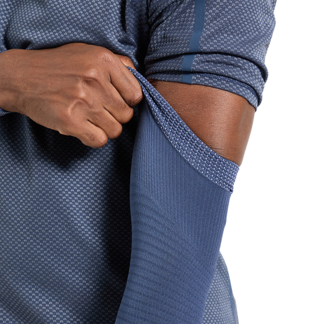 シームレス構造と高い通気性で、寒冷時のランを快適にするアームウォーマー。