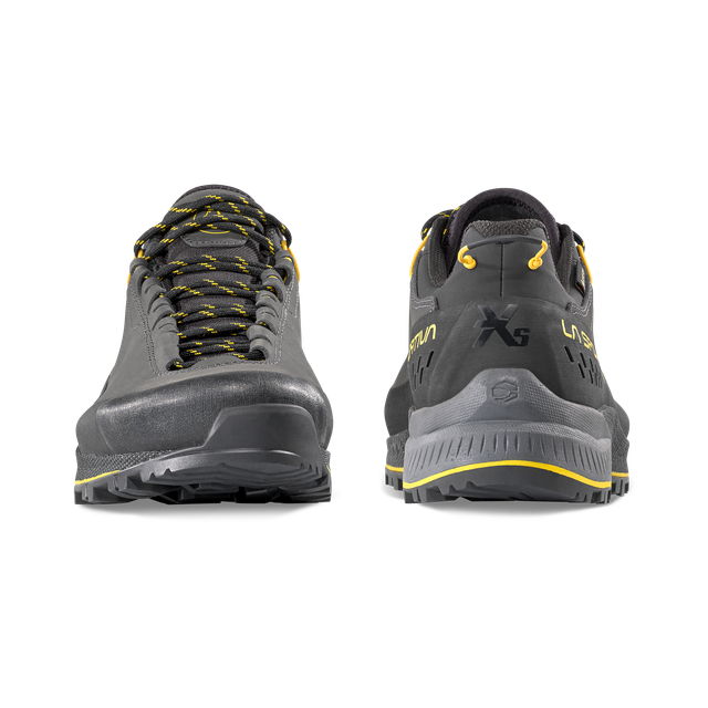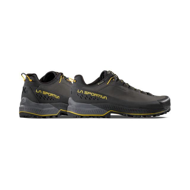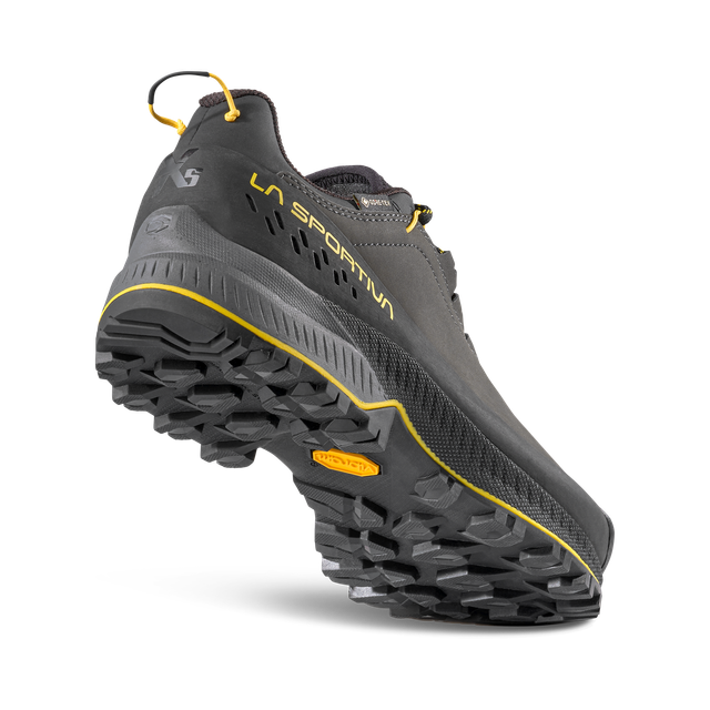 ヌバックレザーのアッパーに、防水透湿性に優れた GORE-TEX ePE Extended Comfort を採用し、悪条件下でも足元をドライに保つ。快適な履き心地と、アプローチシューズ由来のレーシングシステムが高いフィット感を実現。
