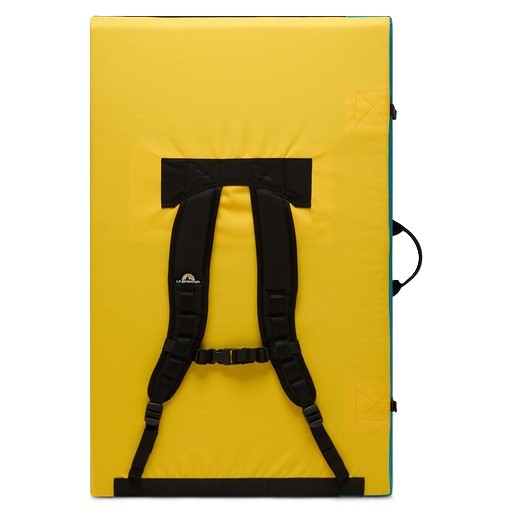 3cmの高密度クローズドセルフォーム層が衝撃力を分散し、6cmのポリウレタン中間層がエネルギーを吸収。さらに、1.5cmのリサイクルポリアミド層が凹凸のある地形にフィットし、屋外のボルダリング課題や難しいオーバーハングを攻略する際の落下から保護する。