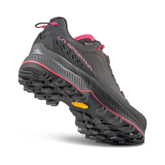 Vibram®社と共に開発したLA SPORTIVA独自のラグパターン。凸凹や斜頸の角度を細かく調整することで、登りや下り、トラバース時のグリップ力をアップする。