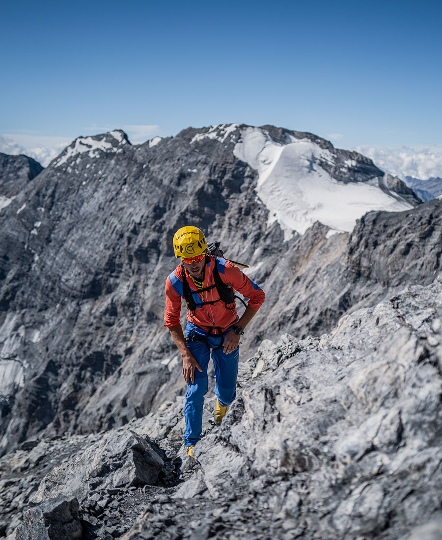岩稜や岩場のある標高2,000mの登山、テント泊装備を背負ったアルプス縦走登山に