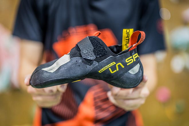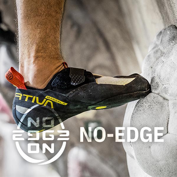 ノーエッジテクノロジーは「マンダラ」のほか、外岩のシングルピッチ向きの「ジーニアス」、最軽量でジム向きの「マントラ」、インドアにも外岩にも対応する「フューチュラ」にも採用し、クライミングシーンに合わせたモデルを展開。