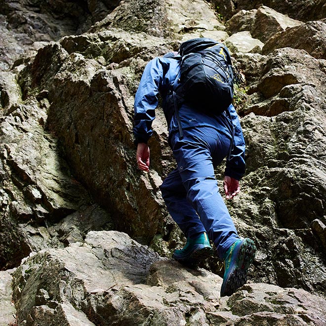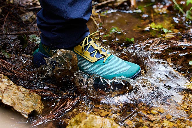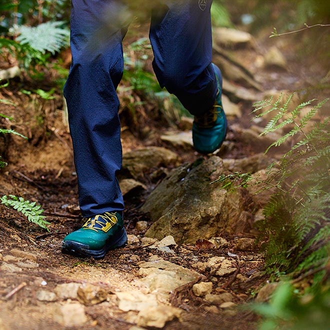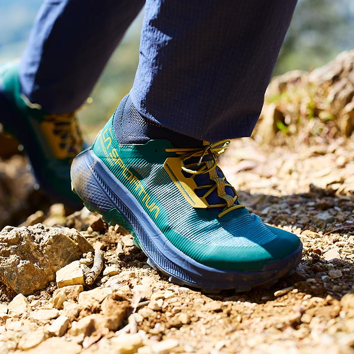 「プロディジオ ハイク」は、さまざまなトレイルシーンに対応してスピーディに行動し続けられるハイキングシューズだ。岩や木があるトレイルでも発揮する高いグリップ力と、足指の自由度が高い快適な履き心地でファストハイカーの軽快な行動をサポートする。