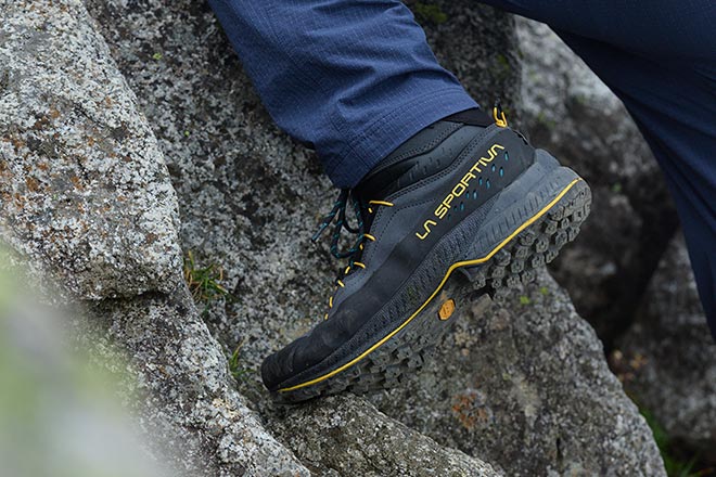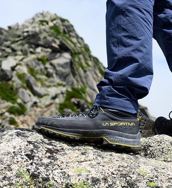 タフさを備えながら軽快で快適な履き心地の「TX4 EVO GTX®」が、岩場や岩稜などの不安定な登山シーンの安全性を高める。