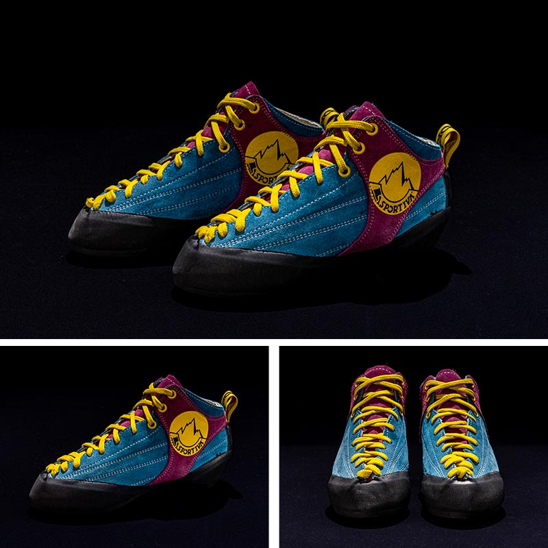 ベースはクライミングシューズの一時代を築いた名作「MEGA」(1986年発売)。ステファン・グロヴァッツ、マノロ、ハインツ・マリアッハなどのクライマーが開発に携わったモデル。時代を想起させるビビットなカラーリングが印象的。